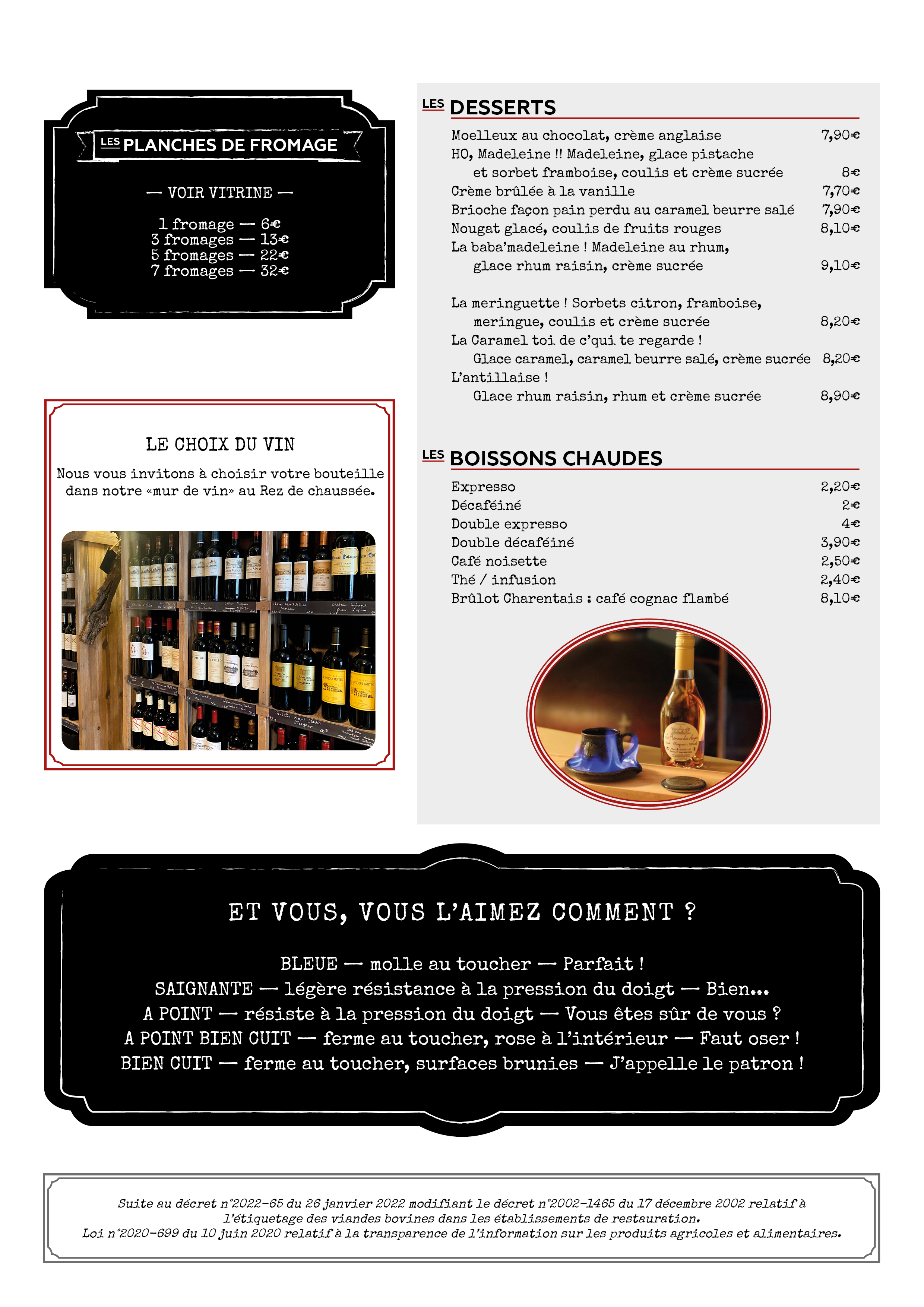 Nous vous proposons également de partager nos planches de charcuteries ou de fromages (voir vitrine à fromages )